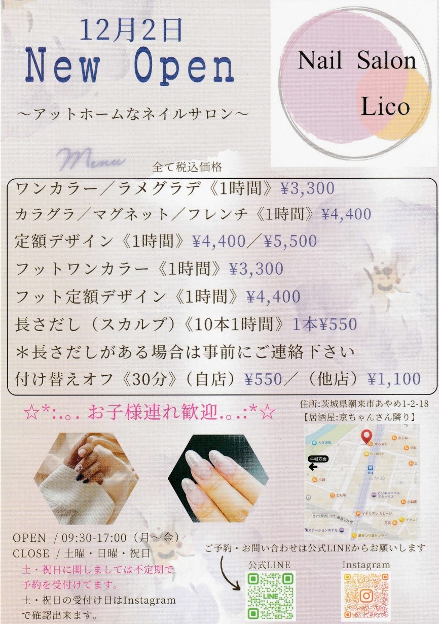潮来市駅前にアットホームなネイルサロンが開店しました。